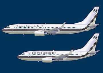 1996年7月,為滿足市場需求,制造較大、更完善、航程超過6000海里的公務機。波音公司與GE公司建立合資企業波音公務噴氣飛機公司,開始波音公務機的研制開發工作,1997年10月正式啟動BBJ計劃。 ![]() BBJ(Boeing Business Jet) BBJ: 基本型,以波音737-700為原型機發展而來,在737-700的基礎上對機翼和起落架部分進行加強,加裝融合型翼梢小翼,航程加大,可達11480公里,并于1998年9月4日首飛。已獲得180分鐘ETOPS(雙發延程飛行)批準,可以飛更多直飛航線。 ![]() BBJ BBJ2: 以波音下一代737-800飛機為原型,較之以737-700貨機為原型的BBJ,長度增加5.85米,空間加大25%。1999年10月開始啟動該計劃,2001年3月已開始交付使用。