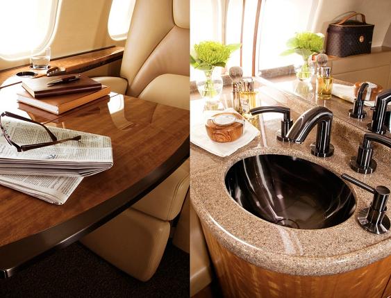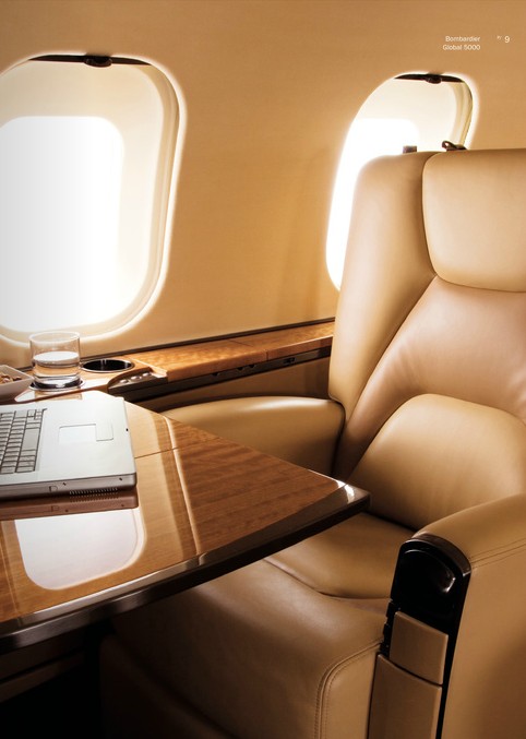 Interior Highlights 客艙要點 The sophisticated cabin of the Bombardier Global 5000 aircraft (龐巴迪環球5000公務機) provides passengers with more high-comfort living and working area than any other super-large business jet. Its quiet, airy atmosphere is highly conducive to relaxed productivity. Equipped with one of the world's most advanced, most reliable Cabin Electronic Systems, the aircraft offers business travelers the same high-caliber, high-speed connectivity capabilities and office options they enjoy on the ground, plus on-demand news/weather/sports packages as well as a theatre of entertainment choices.