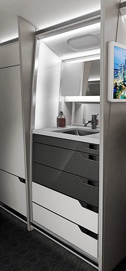 • 自然光照明 • 可從機外進行清潔服務 • 獲得可起降時使用的證書(可選) • 冷熱水供應 • 可選擇在鏡子后安裝顯示器