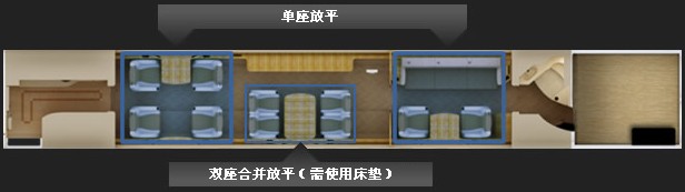 3個臥室區域,單個座位可放平成全臥式躺椅