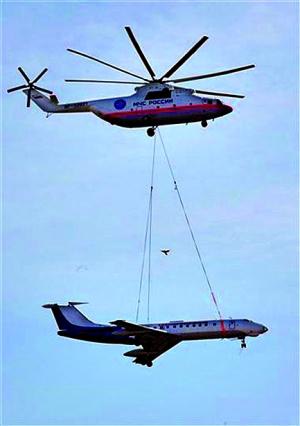 米-26是前蘇聯米里設計局(現改名為米里莫斯科直升機廠股份公司)研制的雙發多用途重型運輸直升機,北大西洋公約組織給的綽號為“光環”(Halo)。這種直升機是繼米-6和米-10以后發展的重型運輸直升機,也是當今世界上最重的直升機。 ![]() 米26直升機吊起大飛機 ![]() 飛龍通航的米26直升機 ![]() 飛龍通航的米26直升機 ![]() 米26直升機參加搶險任務 ![]() 米26直升機參加搶險任務