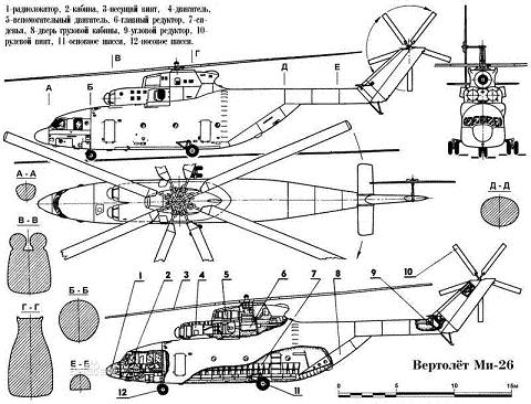 ![]() 米26直升機三視圖 米26直升機介紹 旋翼直徑:32.00m 尾槳直徑:7.61m 機長(旋翼和尾槳轉動):40.03m 機身長(尾槳除外):35.91m 機高(到旋翼槳轂頂部):8.15m 機高(尾槳旋轉):11.60m 水平尾翼翼展:6.02m 主輪距:7.17m 前主輪距:8.95m 米-26內部尺寸 貨艙 長度(裝卸跳板放下)15.00m (不包括跳板) 12.00m |