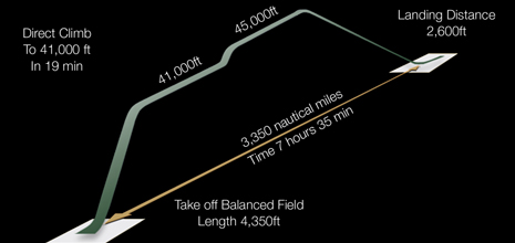 Performance 性能 Falcon performance 獵鷹性能 機會就在眼前。2000S有直飛3,350海里無需加油的續航能力, 有無與倫比的飛行速度和靈活性,以及舒適寬大的客艙,其誘人的魅力無法阻擋。 Go direct 直飛 With its certified altitude of 47,000 ft and its power to climb directly to 41,000 ft, the Falcon 2000S takes you above most traffic and weather. And it can fly 3,350 nm nonstop. Due to its excellent short field capabilities, you can take off and land at smaller, more convenient airports. 獵鷹2000S具有47,000英尺的最大認證高度,直接爬升41,000英尺,不費吹灰之力。獵鷹2000S能帶領乘客穿云破霧,突破各種航行和氣候條件限制,即使連續飛行3,350海里也無需停靠。加上完美的小場地操控性能,可更好地起飛降落各類機場,為您提供更多便捷服務。 ![]() 達索獵鷹2000S公務機直飛 Expanding your horizons 擴大您的視野 從北京到新加坡,從香港到孟買,從成都到雅加達無須中途停靠。即使穿越亞洲直到歐洲的飛行任務,也僅需停靠一次就能圓滿完成。獵鷹2000S本身就是一個經典杰作。 BFL at MTOW: SL - ISA 4,325 ft 1,318 m