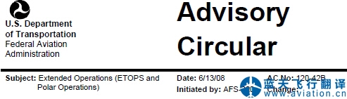 延程運行(ETOPS和極地運行)咨詢通告 Extended Operations (ETOPS and Polar Operations) Advisory Circular