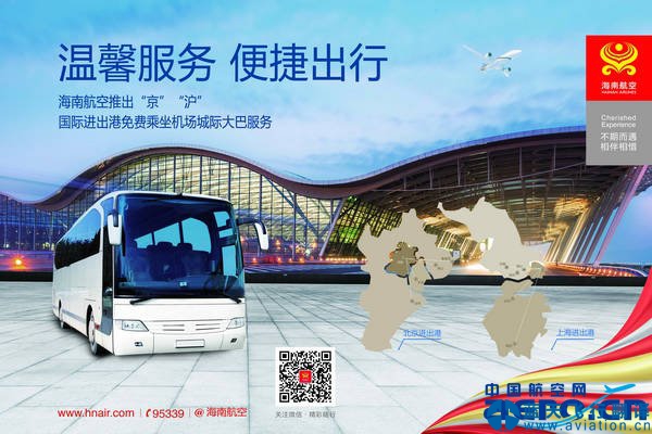海航“機票+大巴”產(chǎn)品城際接送服務(wù)的運輸網(wǎng)已覆蓋北京、上海周邊以下城市點(后續(xù)將增加更多通達城市,具體線路以實時查詢?yōu)闇?zhǔn)): 北京首都機場至天津、秦皇島、滄州、唐山等城市; 上海浦東機場至杭州、無錫、蘇州、昆山、青田等城市。 旅客可在完成機票預(yù)訂后同時預(yù)訂城際巴士行程,預(yù)訂途徑包括海航各大簽約代理點、海航各境內(nèi)外直屬售票處、或直接撥打海航服務(wù)熱線95339。旅客在乘坐城際巴士時,只需在北京首都機場、上海浦東機場或周邊城市的空巴服務(wù)柜臺出示有效身份證件,經(jīng)柜臺工作人員驗證后,即可按秩序乘坐臨近車次的城際巴士抵達目的地。更多產(chǎn)品信息請點擊海航官網(wǎng)產(chǎn)品介紹頁面:www.hnair.com/yhytj/yyfx/201505/t20150520_14388.html。 2015年,隨著海航北京=圣何塞,上海=波士頓、上海=西雅圖新開國際航線盛大啟航,海航京滬兩地的國際航線網(wǎng)絡(luò)得以進一步豐富,海航將不斷致力于為旅客打造五星級服務(wù)體驗,豐富更多完美出行選擇。