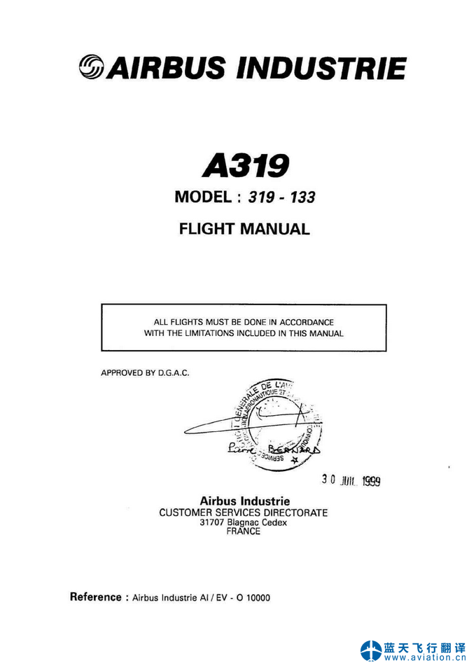 北京藍天飛行翻譯公司完成航空公司11架空客A319/A320飛行機組操作手冊(FCOM FLIGHT CREW OPERATING MANUAL)和AFM飛機飛行手冊(AFM AIRPLANE FLIGHT MANUAL)翻譯任務 11 DEC 19 A319/A320 FLIGHT CREW OPERATING MANUAL and AIRPLANE FLIGHT MANUAL Translation