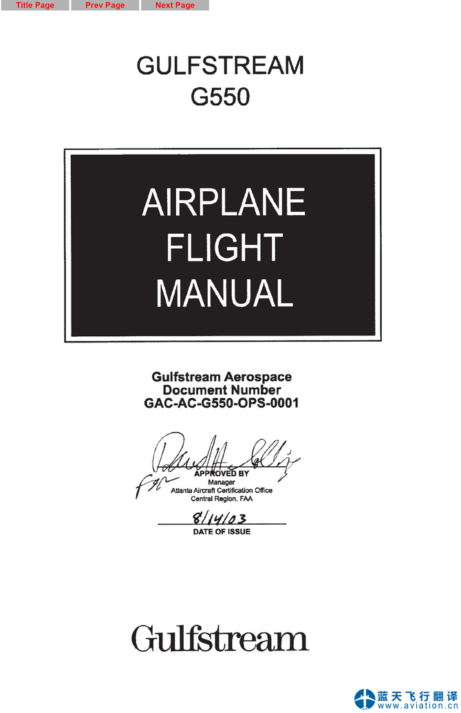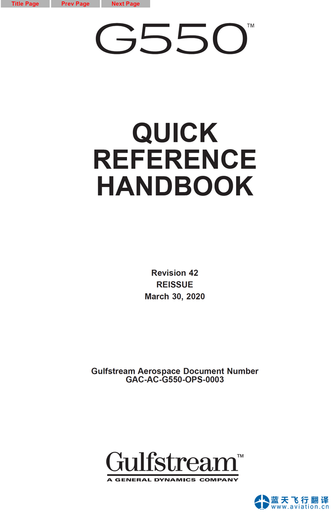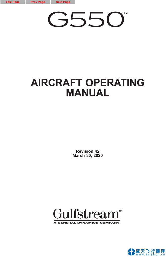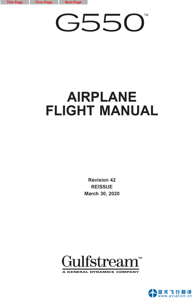 北京藍(lán)天飛行翻譯公司完成大型公務(wù)機(jī)公司的2020年3月30日,第42版灣流G550全套飛行手冊(cè)翻譯任務(wù) G550 Flight Manual Translation