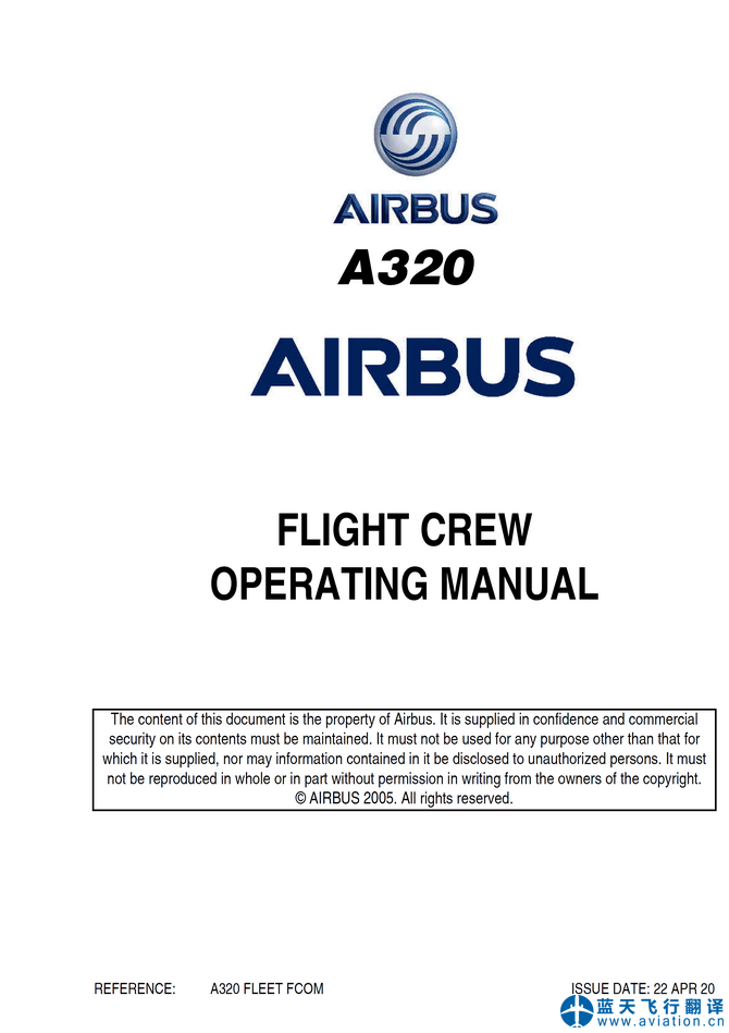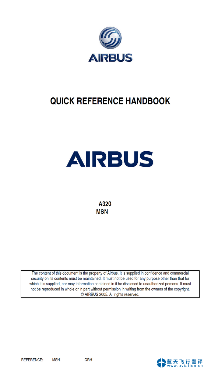 北京藍天飛行翻譯有限公司完成大型航空公司72架空客A320飛行機組操作手冊(FCOM FLIGHT CREW OPERATING MANUAL)、A320快速檢查單(QRH QUICK REFERENCE HANDBOOK)和A320飛機飛行手冊(AIRPLANE FLIGHT MANUAL)翻譯任務 22 APR 20 A320 FLIGHT CREW OPERATING MANUAL, QRH QUICK REFERENCE HANDBOOK and AIRPLANE FLIGHT MANUAL Translation