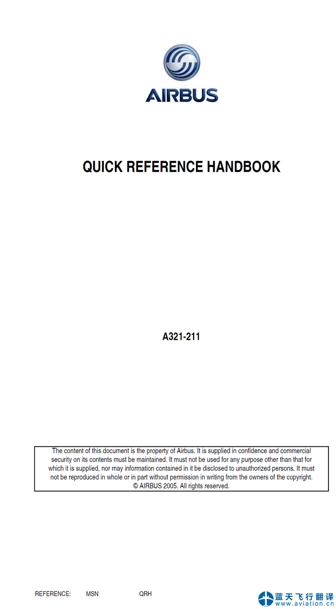 北京藍(lán)天飛行翻譯有限公司完成航空公司5架空客A320飛行機(jī)組操作手冊(cè)(FCOM FLIGHT CREW OPERATING MANUAL)、A320快速檢查單(QRH QUICK REFERENCE HANDBOOK)、A320飛機(jī)飛行手冊(cè)(AIRPLANE FLIGHT MANUAL)和A320飛行機(jī)組技術(shù)手冊(cè)(FLIGHT CREW TECHNIQUES MANUAL)翻譯任務(wù) 03 JUN 20 A320 FLIGHT CREW OPERATING MANUAL, QRH QUICK REFERENCE HANDBOOK, AIRPLANE FLIGHT MANUAL and FLIGHT CREW TECHNIQUES MANUAL Translation